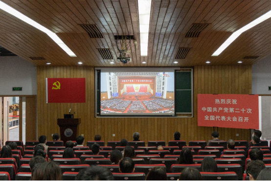 必赢3003no1线路检测中心精心组织师生收看二十大开幕会。在智信馆117报告厅开设集中观看学习分会场,学院党政班子成员、基层党支部书记、师生党员线下集中观看学习,各支部组织师生认真线上观看。