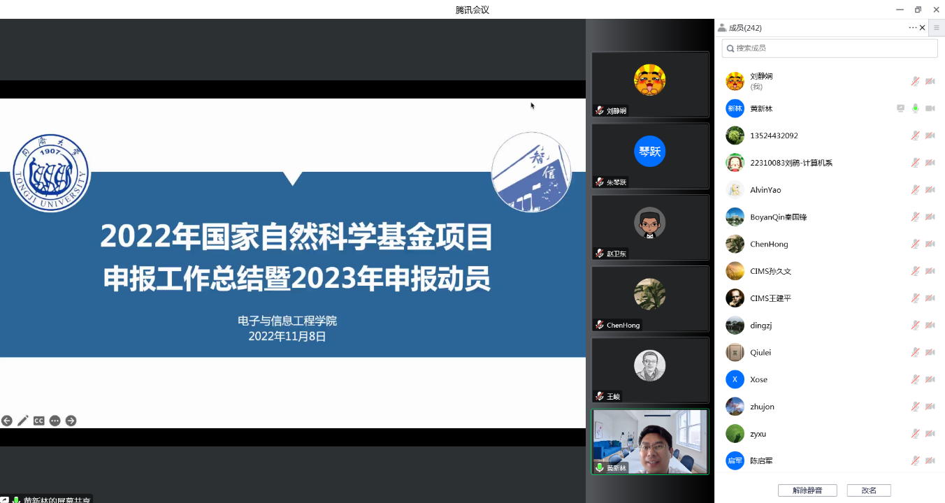 黄新林进行了自然科学基金申报动员。他回顾了2022年学院自然科学基金申报的动员、排摸、组织、辅导、审核等工作,将2021年和2022年的申报和获批情况从不同角度进行了细致的对比分析,并对2023年的自然科学基金申报工作进行了部署安排。