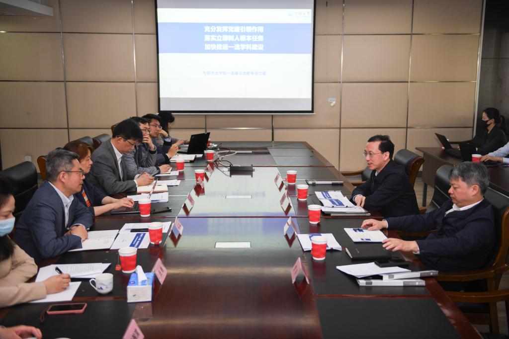 陈虹院长从百年历程与基本概况、历史聚焦与五年亮点、现状分析与发展举措三个方面对学院工作进行了全面梳理和汇报。从1912年至今,学院历经了111年的发展历程,始终面向国家重大战略需求和经济主战场,牢记立德树人使命,近年来在建设师资队伍、提升教学水平、践行三全育人、深化科教产教融合、推进有组织科研、加强国际合作等方面都取得了亮眼成绩。未来,学院会持续面向国家和上海市重大需求,加强人才引育力度、严把人才培养质量、深化有组织科研、发挥对德对欧合作优势,发扬自强自信、守正创新精神,踔厉奋发,勇毅前行。