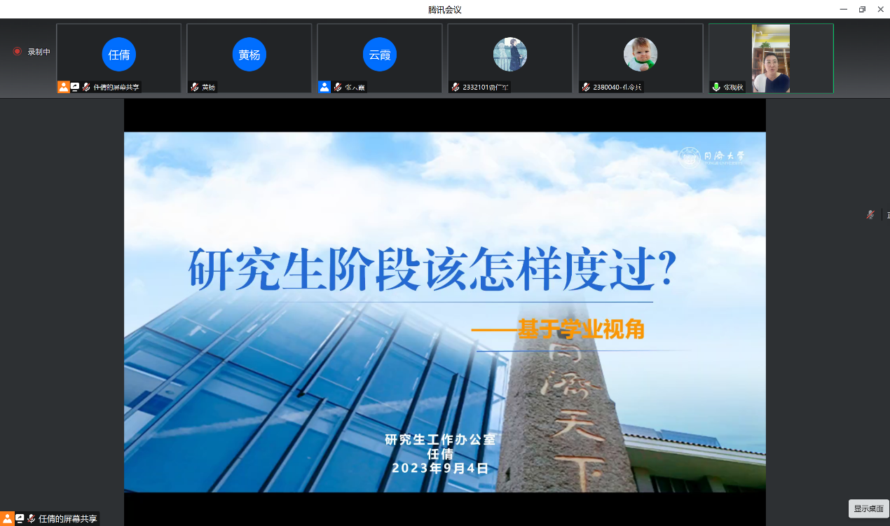 2023年9月4日上午,学院为2023级研究生新生举行了题为《研究生阶段该怎样度过——基于学业视角》的新生入学宣讲会,会议通过腾讯会议平台举行,研究生工作办公室主任张砚秋、副主任张云霞、各系研究生教务老师和2023级研究生新生共计400余人参加本次会议。会议由研究生工作办公室教务老师任倩主持。本次宣讲会旨在帮助新生详细了解研究生各阶段的学业任务和重要注意事项,提早做好规划,并为新生解答疑虑。