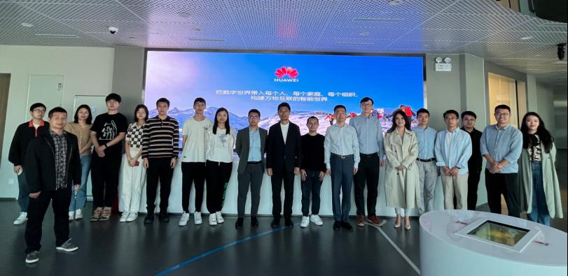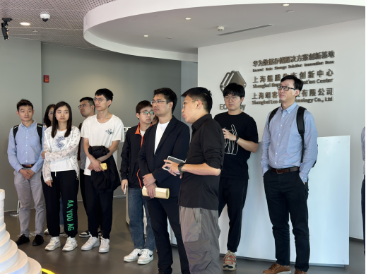 学院一行首先来到华为上海昇腾鲲鹏创新中心展示大厅,听取工作人员介绍华为研究与创新战略及其行业解决方案。