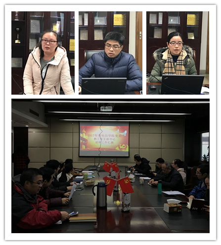 1月25日下午13:00,学院党委在智信馆305会议室进行了教工党支部书记述职工作的现场汇报。由童学锋书记和四个党总支书记以及各总支的党员代表共9人作为评议组对参加现场汇报的在职教工支部书记进行了民主评议。