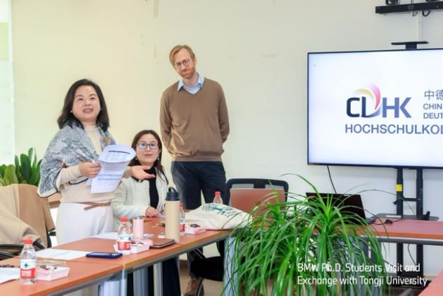 紧接着,双方的博士生进行了深入的学术交流和座谈,会议由学院副院长张皓主持。首先,张皓教授对来访的宝马集团工作人员、德国博士生团队表示诚挚欢迎,并简要介绍了电信学院的发展情况。中德学院副院长Jan Harder介绍了中德智能科学与技术研究中心的相关成果,李莉教授介绍了宝马集团和必赢3003no1线路检测中心的校企合作情况。