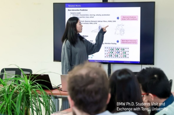 随后,宝马集团Jiaje Fan、Simon Schramm等七位德国博士生就汽车外观设计、电池充放电预测、自动泊车等自动驾驶以及当前汽车前沿技术发展分别作了相关学术报告,必赢官网博士研究生李欣然基于研究课题作题为“基于深度学习的自动驾驶车辆轨迹预测工作”的学术报告。