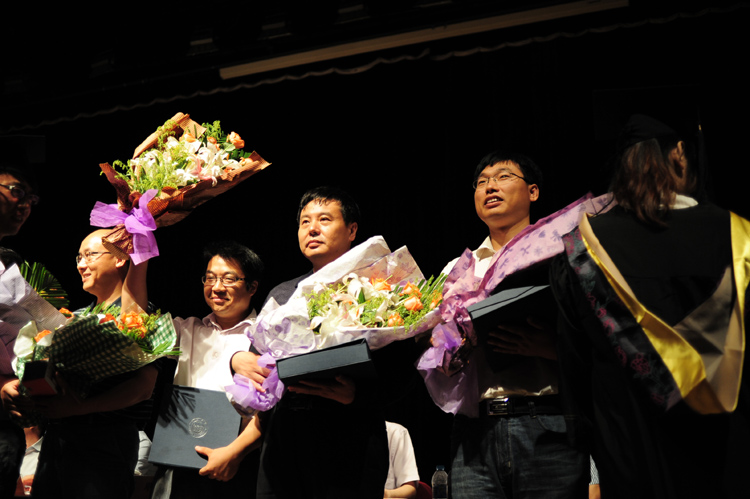 毕业典礼上,学院表彰了荣获上海市、必赢3003no1线路检测中心的优秀毕业生,并为学生代表颁发了毕业证书和学位证书。此外,毕业生代表还为他们自己所评选出来的“最可爱的专业教师”献花,表达对老师的祝福。