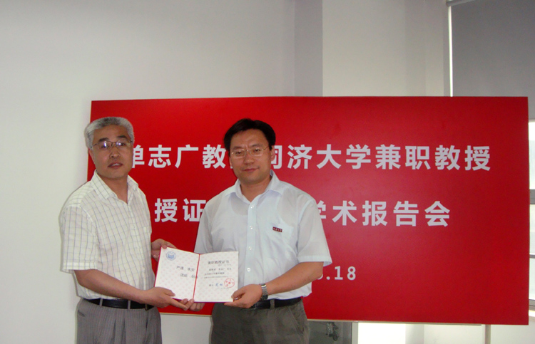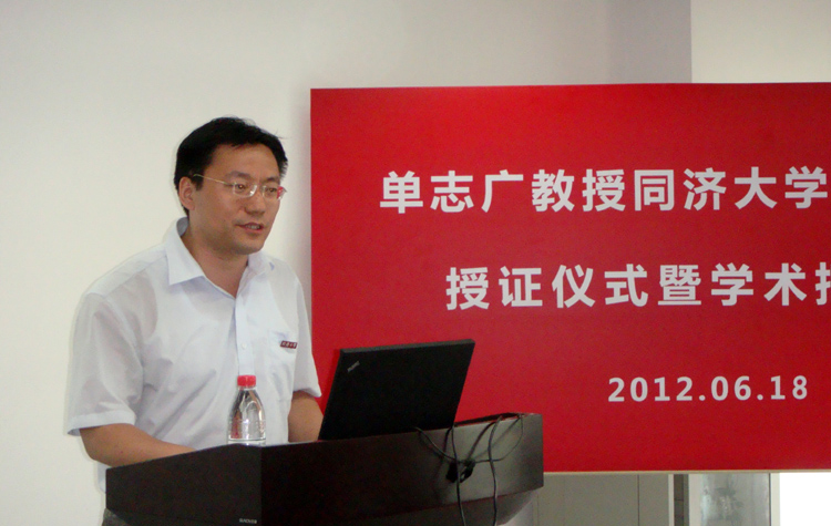 授聘仪式上,丁志军副主任介绍了单志广教授的个人简历以及学术成就,苗夺谦副院长为单志广教授佩戴了必赢3003no1线路检测中心校徽,颁发了兼职教授证书。