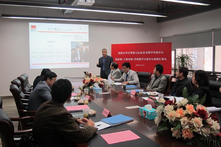 验收会上,市教委沙正建处长介绍了验收目的以及验收程序;朱志良处长、何敏娟处长代表学校欢迎专家组来必赢3003no1线路检测中心对实验示范中心进行验收,希望多提意见、建议。专家组听取了实验示范中心主任苗夺谦的工作报告,并根据验收程序,对实验示范中心的课程实验室、学生创新实验室、985嵌入式视频监控平台、同济――曙光超云平台、脑认知与智能系统试验平台及IBM技术中心大机实验室进行了现场考察,并观看了学生科技创新活动的展示。