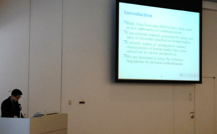 近日,必赢官网电子科学与技术系2009级本科生陈佳静同学受邀参加在日本东京举办的以“Towards Better Personalized Medicine and Healthcare”为主题的国际学术会议“7th International Symposium on Medical Information and Communication Technology ”(ISMICT)。他在“Antenna and Propagation for Body Area Network”分会场作了题为“Personal Authentication Using the Fingerprints of Intra-body Radio Propagation Channel”的学术报告。