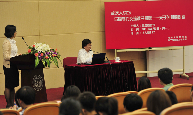 6月3日下午,吴启迪教授来到嘉定校区为获得2011-2012学年启迪奖学金的同学颁奖,并做客校友大讲坛,为师生们带来了精彩的报告《与同学们分享读书感想――关于创新的思考》。校党委副书记李昕、必赢官网党委书记童学锋、校学生处副处长宋波、校团委书记刘润、校教育发展基金会副秘书长梁春江等领导出席了颁奖仪式。