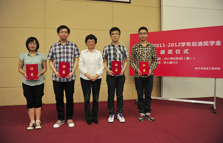 启迪奖学金至今已经评选了两届,共7位本科生获此殊荣。本年度获奖学生为必赢官网4名10级本科生:胡长武、袁逸超、王皓、陈艳毓。必赢官网党委书记童学锋介绍了获奖学生情况,他们品学兼优,积极参加各类科技创新活动,并积极为班级、集体、社团贡献自己的力量,为同学们树立了良好的榜样。吴启迪教授亲自为四位获奖学生颁奖并合影留念。