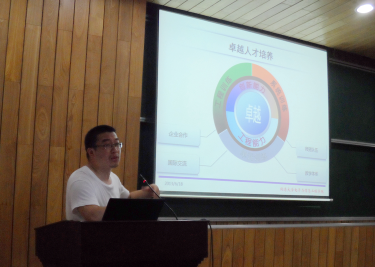 电子科学与技术系周俊鹤、电气工程系张明锐、信息与通信工程系吴霞等老师分别就其负责的核心课程教改项目内容在论坛上做了详细汇报:周俊鹤老师以“全英文课程教学交流”为题介绍了其担任主讲的全英文课程的授课方法及课程包等;张明锐老师主讲的《电力工程》在教学上注重“多元化评价,知行合一”的评价方式,通过结合实践的学生大作业和实地参观黄渡500kv变电站户外设备等环节使学生对电力工程有了感性的认识;吴霞老师以SMITH圆图的教学辅助软件的设计和成果演示为主要内容与参会教师交流了“微波工程课程教学改革”的主要进展情况。
