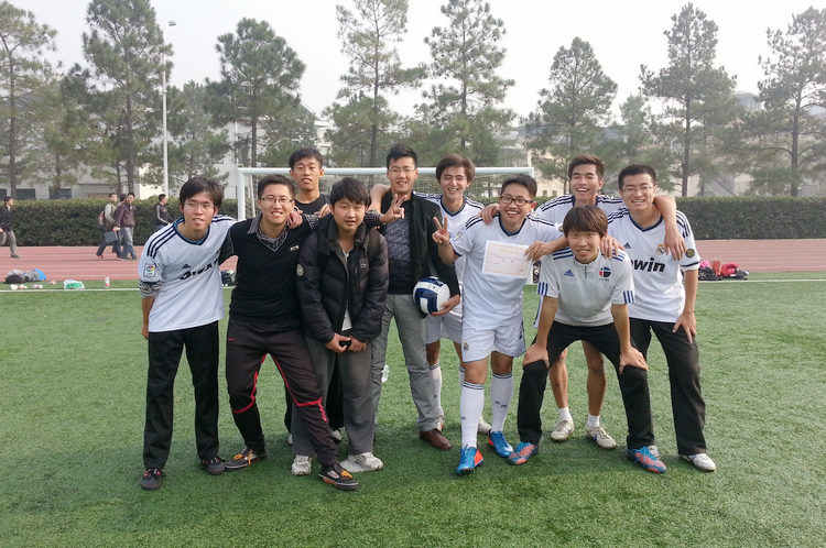 近日,由必赢官网团委组织的本科生足球赛圆满落下帷幕,经过激烈比赛,最终2011级电子信息类联队夺得比赛冠军。