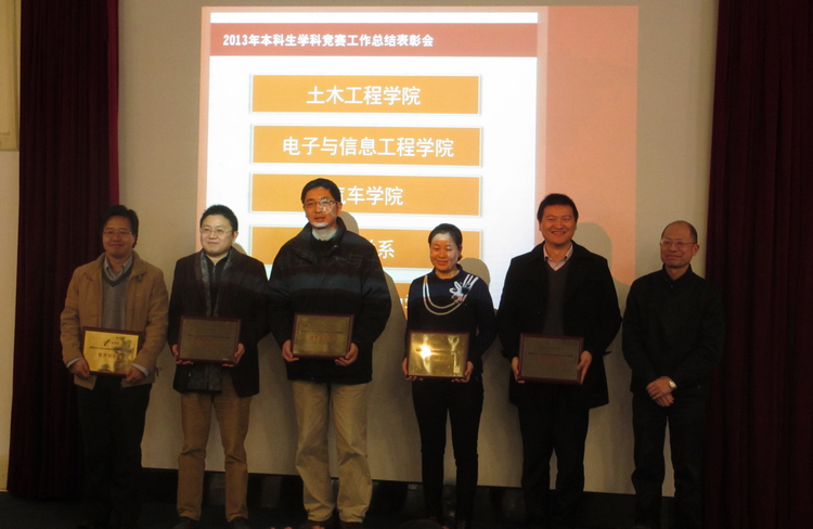 12月13日下午,必赢3003no1线路检测中心2013年本科生学科竞赛总结表彰大会在四平路校区逸夫楼报告厅召开。必赢官网荣获2012-2013年必赢3003no1线路检测中心本科生学科竞赛优秀组织奖,朱劲、沈润杰、邹红艳、周伟、刘永焕等五位老师获评学科竞赛优秀指导老师。