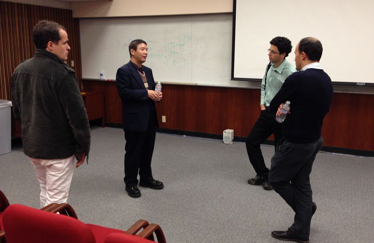 近日,受美国加州大学圣地亚哥分校 (University of California, San Diego, UCSD) 电气与计算机工程系 (ECE) 国际著名教授Vitaliy Lomakin的邀请,必赢官网电子科学与技术系主任童美松教授访问了该系及其实验室,双方就互相感兴趣的前沿课题研究进行了深度交流,并就开展有效的国际合作、派遣交换学生和青年教师去其实验室进修学习、推荐优秀中国留学生毕业后来我校任教等达成了一致。期间,童美松教授受邀为该系和Center for Magnetic Recording Research (磁记录研究中心)联合举办的系列讲座作了一场公开学术报告,报告就其最近提出的、用于非均匀和各项异性材料复杂电磁场问题分析的新颖无网格方法作了详细讲解,引起了学生和教授的强烈兴趣。报告结束后感兴趣的学生和教授与其进行了长时间的、更加广泛和深入的讨论和交流。