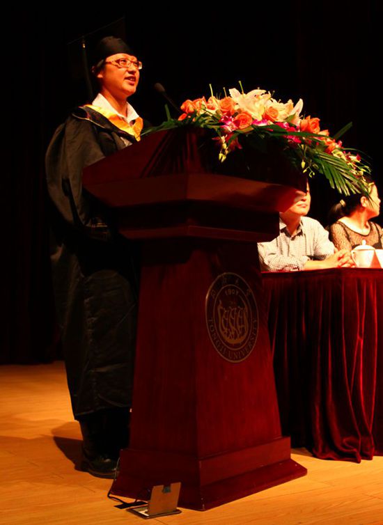 会场入口处,老师和毕业生纷纷以走红地毯的形式入场,并在签名簿上留字、合影。地毯两侧的展板上,摆设的是同学们评选出的“最可爱的专业教师”给毕业生的寄语。毕业典礼之前,记录毕业生大学生活的视频滚动播放。10点整,毕业典礼正式开始。大会上,陈启军院长对全体毕业生顺利毕业表示祝贺,并分享了自己的人生感悟,同时对同学们提出了殷切的希望,希望毕业生们勇敢追逐梦想、保重身体、做一个有担当的人;教师代表苏永清老师,分享了自己的心得感悟,并表达了对同学们的衷心祝福;陈艳毓同学代表全体毕业生,表达了对母校的无限感激和不舍之情,并表示会牢记母校的教诲,永远记得“同济电信人”这个名字,在今后的工作岗位和学习生活中继续努力。最后,马锦明副书记从《必赢3003no1线路检测中心章程》讲起,现场考验了同学们对校训、校风的理解,并寄语毕业生们在学习和工作中秉承可持续发展的理念,做专业精英和社会栋梁,成为令母校骄傲的人。