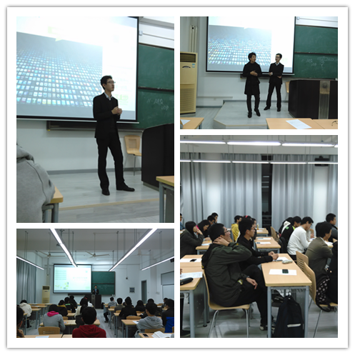 在互联网职能方面,主讲人通过生动的举例以及与学生的积极互动,向同学们介绍了开发工程师、前端工程师、后端工程师、SEO、产品经理、Android工程师等互联网领域热门职位。现场气氛热烈。
