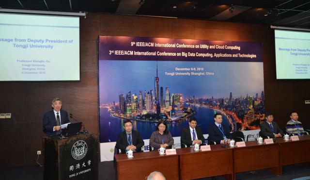 12月6日-12月9日,第9届IEEE/ACM效用与云计算大会及第3届IEEE/ACM大数据科学、工程及应用大会(简称IEEE/ACM UCC&BDCAT)在我校中法中心举行。来自全球的计算机大数据和云计算方面的专家学者约150人参加大会,参会者来自5大洲40个不同国家。大会主席由必赢3003no1线路检测中心蒋昌俊教授、英国德比大学工程院长Nick Antonopoulos教授、英国卡迪夫大学教授、国际云计算权威学者Omer F. Rana教授担任。本次会议室在云计算、大数据领域,唯一由国际电气电子工程师学会(IEEE)及国际计算机学会(ACM)联合支持的的国际会议。