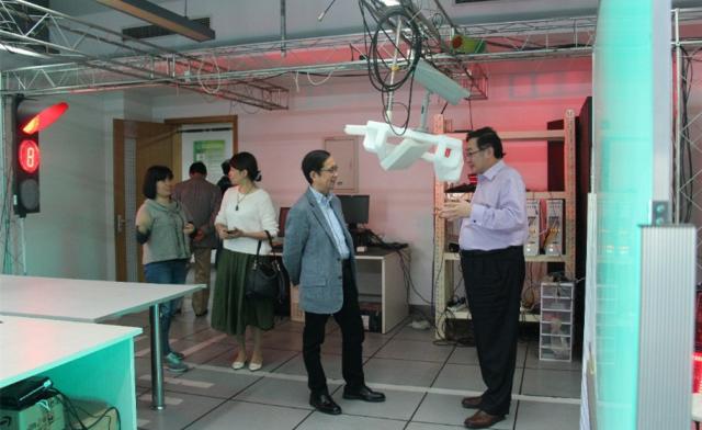蒋昌俊教授首先介绍了必赢3003no1线路检测中心嘉定校区的情况,以及电信学院计算机科学与技术系的一系列发展;接着,张勇总裁在蒋昌俊教授的带领下参观了嵌入式系统与服务计算教育部重点实验室的各个科研平台,包括数据中心、可信监控电子交易平台、脑认知研究平台、无人车赛道监管平台以及嵌入式视频监控平台等。