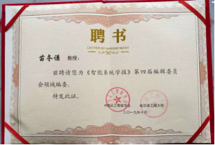 此外,苗夺谦教授也被人工智能学会会刊《智能系统学报》聘为期刊第四届编辑委员会领域编委。(张红云)