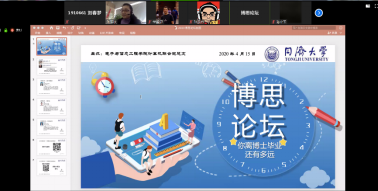 2020年4月15日下午2点,由学院计算机联合党总支主办2019级计算机博士班协办的“你离博士毕业还有多远”在线博思论坛在zoom平台举行。论坛特邀三位刚毕业的博士生校娅、吴健和韩丰夏与大家分享交流。学院副院长尹学锋教授、计算机系主任丁志军教授和计算机联合党总支副书记张砚秋老师出席了论坛,论坛由19级博士生王瑞主持,共有60余名博士生参加了此次论坛活动。