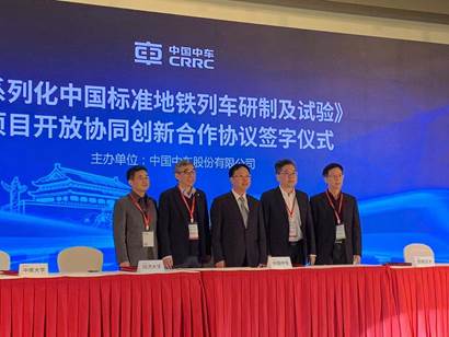 2020年1月8日,中国中车系列化中国标准地铁列车研制及试验项目开放协同创新战略合作签字仪式在北京国家会议中心举行。为进一步推动城市轨道交通持续健康发展,提升我国城轨交通装备的技术水平和核心竞争力,在相关部门和协会的支持下,中国中车股份有限公司联合各地地铁公司、科研院校和协作单位,以“整车标准化、系统集成化、功能配置化、部件模块化、零件通用化”为总体原则,组织实施国家重大技术装备攻关工程项目《系列化中国标准地铁列车研制及试验项目》。